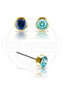 18K GOLD THREADLESS ATTACHMENT W. DANGLE SET W. LAB CREATED GEMSTONE