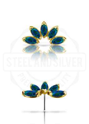 18K GOLD THREADLESS MARQUISE FAN ATTACHEMENT SET WITH LAB CREATED OPAL