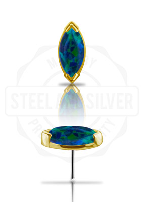 18K GOLD THREADLESS MARQUISE ATTACHEMENT SET WITH LAB CREATED OPAL