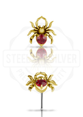 18K GOLD SPIDER THREADLESS ATTACHMENT SET W. GENUINE SONGEA SAPPHIRE