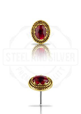 18K GOLD THREDLESS ATTACHMENT SET W. GENUINE SONGEA SAPPHIRE