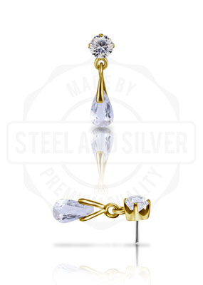 18K GOLD THREADLESS ATTACHMENT SET W. PREMIUM ZIRCONIA AND GENUINE WHITE TOPAZ