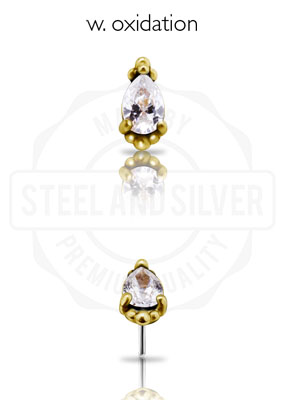 18K GOLD THREADLESS ATTACHMENT SET W. PEAR SHAPE PREMIUM ZIRCONIA