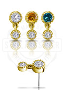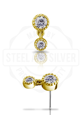 18K GOLD THREADLESS ATTACHMENT W. DANGLE SET W. PREMIUM ZIRCONIA