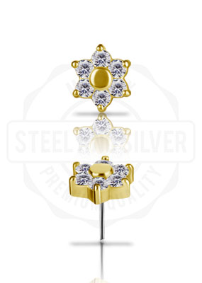 18K GOLD THREADLESS FLOWER ATTACHMENT SET W. PREMIUM ZIRCONIA