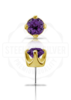 18K GOLD THREADLESS ATT. SET W. GENUINE DARK AMETHYST (3.0MM)