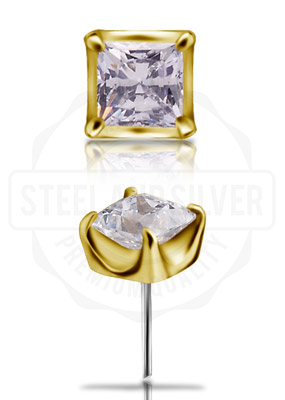 18K GOLD THREADLESS ATTACHMENT W. DANGLE SET W. PREMIUM ZIRCONIA