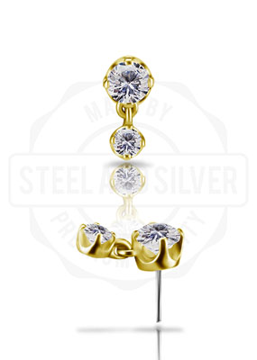 18K GOLD THREADLESS ATTACHMENT W. DANGLE SET W. PREMIUM ZIRCONIA