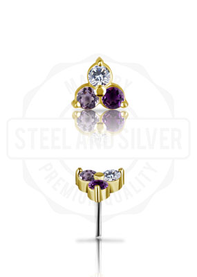 18K GOLD THREADLESS ATT. SET W. GENUINE GEM STONES (MULTICOLOR)