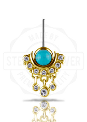 18K GOLD TL ATT. FOR VERTICAL HELIX SET W. TURQUOISE A. WHITE TOPAZ