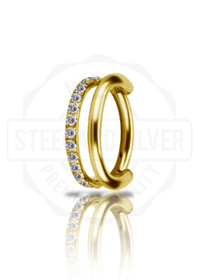 DEVILHEART® TIT. GOLD PVD HINGED DOUBLE CONCH RING SET W. PREMIUM ZIRCONIA
