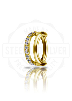 DEVILHEART® TIT. GOLD PVD HINGED DOUBLE SEGMENT RING SET W. PREMIUM ZIRCONIA
