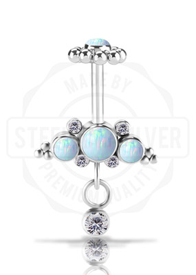 DEVILHEART® TIT. TL VERTICAL HELIX SET W.LAB CREATED OPALS & PREMIUM ZIRCONIA