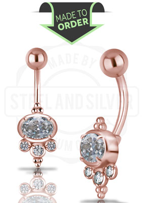 ROSE GOLD PVD SS316L TRIBAL BANANA WITH SET CUBIC ZIRCONIA