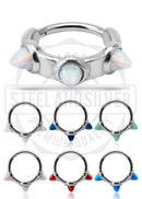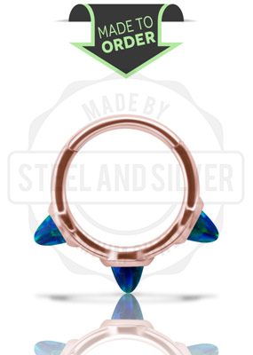 ROSE GOLD PVD SS316L HINGED CLICKER W. LAB CREATED OPAL SPIKES