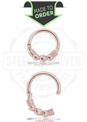 ROSE GOLD PVD STEEL HINGED RING (3 BALLS)