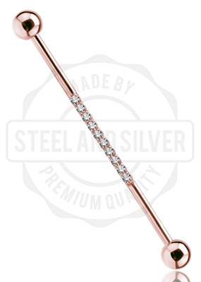 ROSE GOLD PVD SS316L INDUSTRIAL CRYSTAL BARBELLS SET W. CUBIC ZIRCONIA