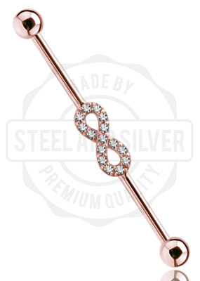 ROSE GOLD PVD SS316L INDUSTRIAL CRYSTAL BARBELLS SET W. CUBIC ZIRCONIA