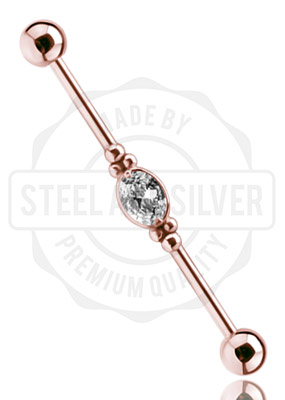ROSE GOLD PVD SS316L INDUSTRIAL CRYSTAL BARBELLS SET W. OVAL CUBIC ZIRCONIA
