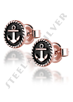 ROSE GOLD PVD STEEL EAR STUD (ANCHOR/ROPE 08MM)