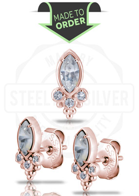 ROSE GOLD PVD TRIBAL EAR STUDS SET W. CUBIC ZIRCONIA