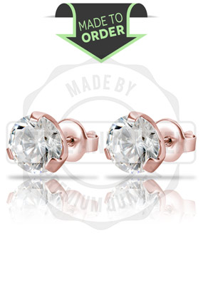 SS316L ROSE GOLD PVD EARSTUDS SET W. 8MM CUBIC ZIRCONIA