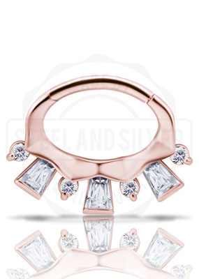 ROSE GOLD PVD SS316L HINGED SEPTUM/DAITH CLICKER SET W. PREMIUM ZIRCONIA