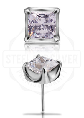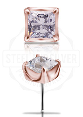 18K ROSE GOLD THREADLESS ATT. SET W. PRINCESS CUT PREMIUM ZIRCONIA