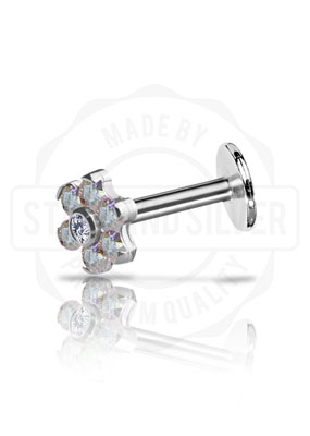 TITANIUM INT. MICRO LABRET W. PREMIUM ZIRCONIA FLOWER ATT.(DISC 4MM)