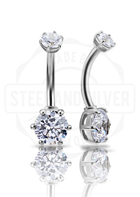 18K WHITE GOLD INT. THREADED NAVEL BANANA SET W. PREMIUM ZIRCONIA (4+6.5MM)