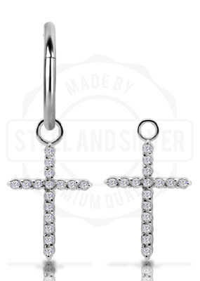 18K WHITE GOLD CROSS CHARM MADE WITH LAB CREATED DIAMONDS
