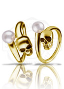 18K WHITE GOLD HINGED SEGMENT SKULL CLICKER W. FRESH WATER PEARL