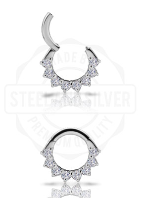 18K WHITE GOLD HINGED SEPTUM & DAITH CLICKER SET W. PREMIUM ZIRCONIA