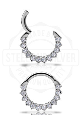 18K WHITE GOLD HINGED SEPTUM & DAITH CLICKER SET W. PREMIUM ZIRCONIA