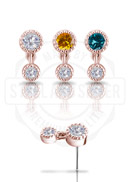 18K WHITE GOLD THREADLESS ATTACHMENT W. DANGLE SET W. LAB CREATED DIAMONDS