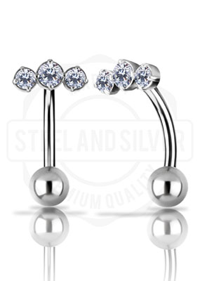 SS316L BELLY BANANA SET W. CUBIC ZIRCONIA