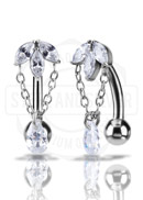 SS316L BELLY BANANA SET W. CUBIC ZIRCONIA AND PEAR DROP DANGLE