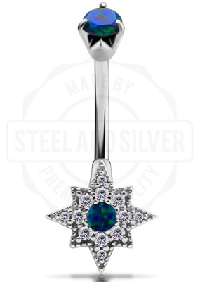 SS316L DOUBLE JEWELLED BELLY BANANAS SET W. LAB CREATED OPALS