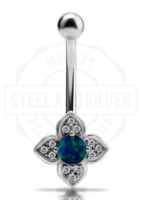 SS316L BELLY BANANAS SET W. LAB CREATED OPALS