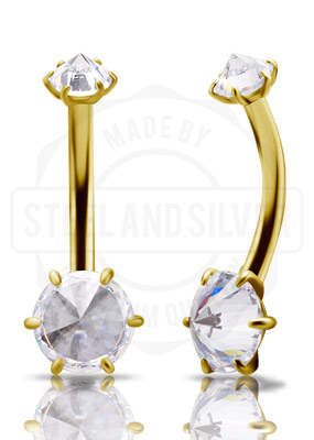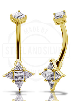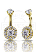GOLD PVD SS316L DOUBLE JEWELLED BANANAS SET W. PREMIUM ZIRCONIA