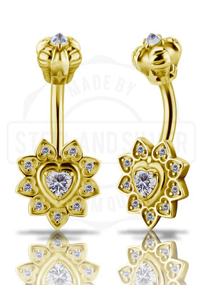 GOLD PVD SS316L DOUBLE JEWELLED BANANAS SET W. PREMIUM ZIRCONIA