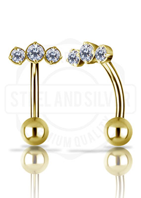 GOLD PVD SS316L BELLY BANANA SET W. CUBIC ZIRCONIA