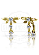 GOLD PVD SS316L SNAKE BELLY BANANA SET W. DOUBLE JEWELED AND DROP DANGLES