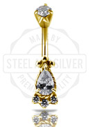 GOLD PVD SS316L TRIBAL DJ BANANA WITH SET CUBIC ZIRCONIA