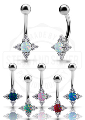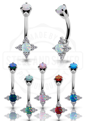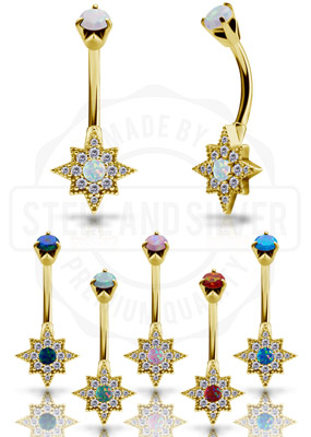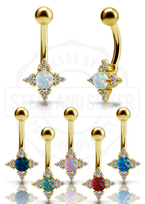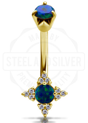 GOLD PVD SS316L BELLY BANANAS SET W.LAB CREATED OPALS