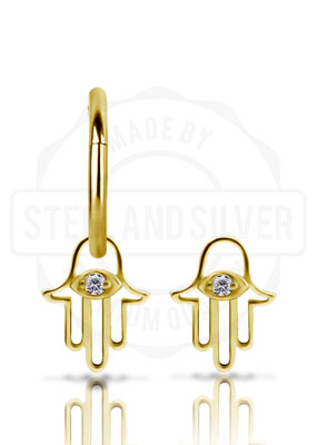 GOLD PVD SS316L HAMSA CHARMS FOR BHSR W. PRONG SET CENTER PREMIUM ZIRCONIA