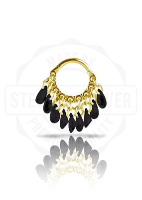 GOLD PVD SS316L HINGED RING WITH PEAR SHAPE STONE DANGLES