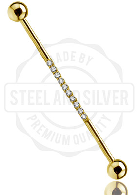 GOLD PVD SS316L INDUSTRIAL BARBELLS SET W. CUBIC ZIRCONIA