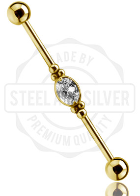 GOLD PVD SS316L INDUSTRIAL BARBELLS SET W. OVAL CUBIC ZIRCONIA