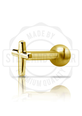GOLD PVD ONE SIDE INT. THREADED MICRO BARBELLS (PLAIN CROSS) (0.8mm INT.)